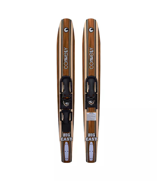 The BIG EASY combo skis are designed specifically for bigger skiers, offering a wide surface area on each ski to enable fast and easy starts. Measuring 67" and equipped with a glass-filled nylon fin, these skis deliver reliable performance. Built with reinforced composite materials, a glossy UV-resistant finish, and a double tunnel design, the Big Easy demonstrates that larger size means enhanced capability.