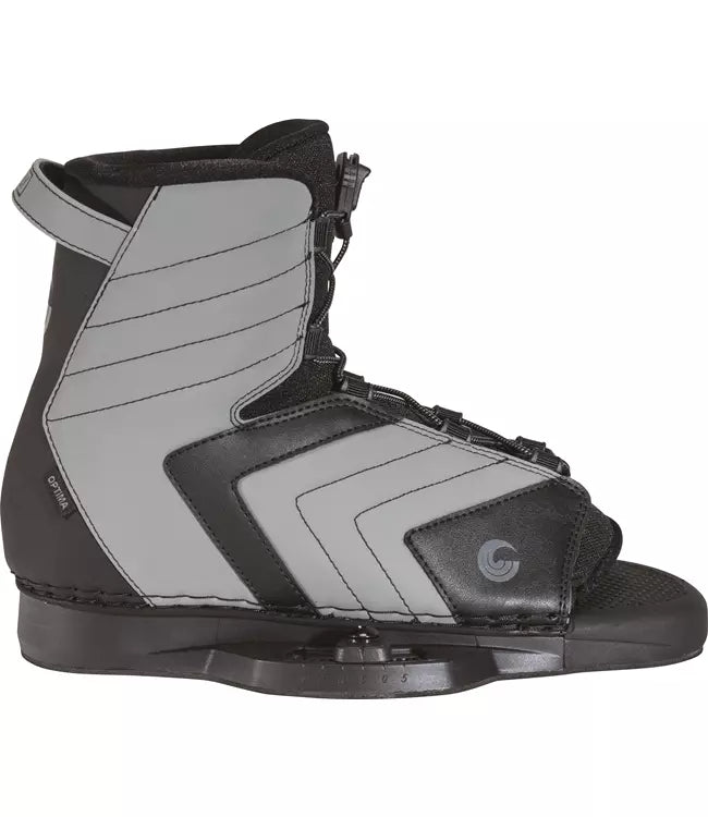 The Optima boot focuses on easy entry, comfort, and sleek design. Its lycra-lined heel and toe allow for effortless stepping in, while a single lace system secures the boot snugly around the foot for a custom-like fit. This lightweight model accommodates a broad range of sizes.