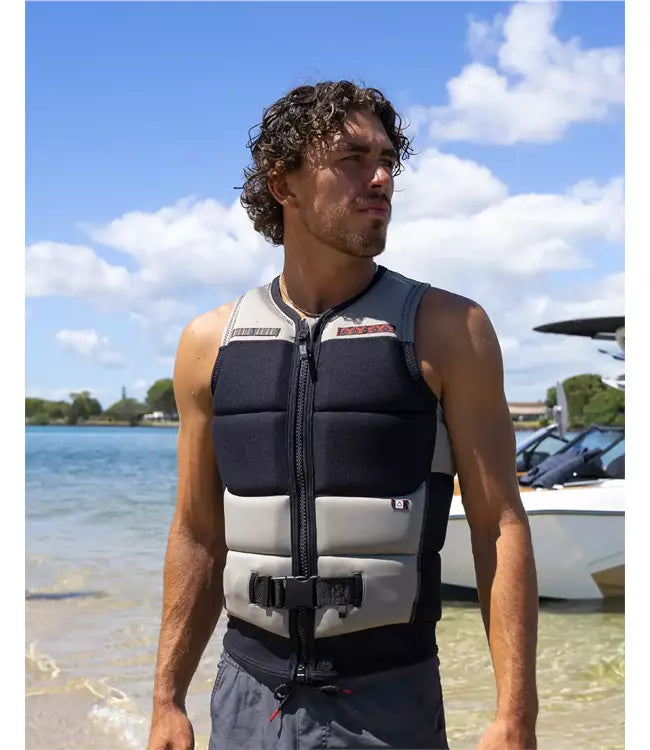 The Follow Capiva Mens Life Vest offers a stylish and durable design with intricate paneling. The high-end street jacket approach of this vest can be seen in its defined lines and fabric, while the satin patches add a touch of military-inspired style. Follow's Secureprene Neoprene material stands out for its incredible strength and comfort, making it resistant to wear and tear. Additionally, Follow's Unique TrueFit Liner provides a perfect fit without hindering movement thanks to its inherent flexibility.