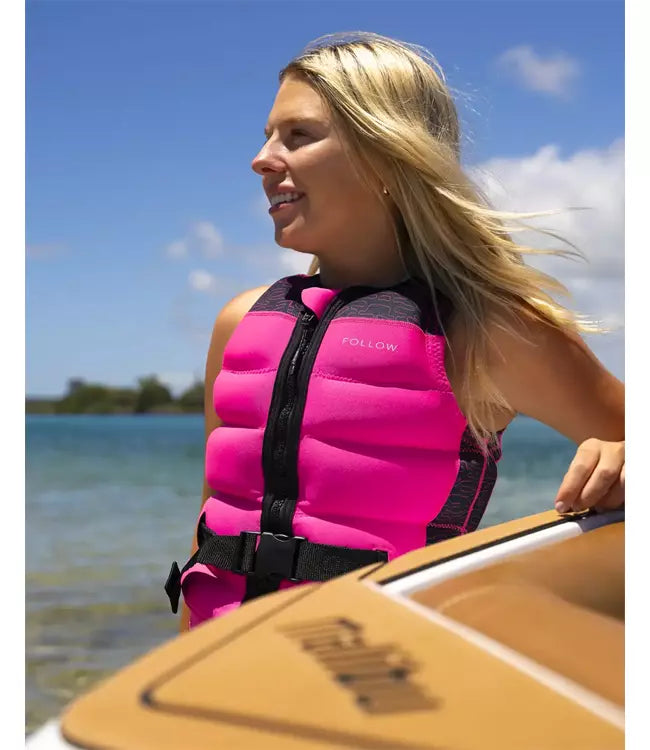 Featuring sublimated natural crystal graphics and a flattering stitch line, the Follow Harmony Women's Life Vest effortlessly combines style and functionality. Drawing inspiration from Follow's iconic women's vests, this carefully crafted piece delivers top-tier performance without the hefty price tag. A must-have for any waterski or wakeboard excursion.