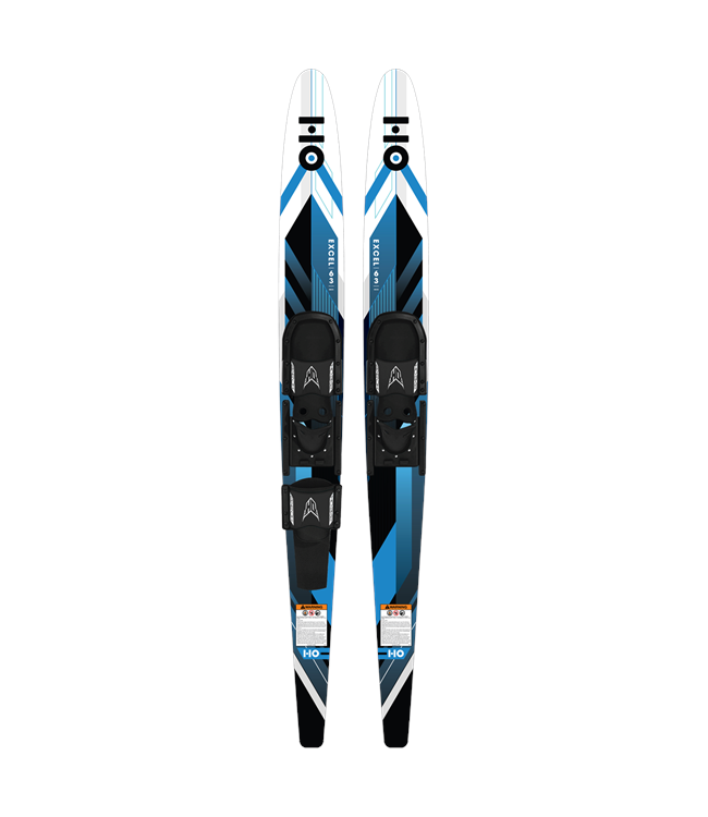 The Excel Combo skis are perfect for enhancing your lake experience. Designed with a classic waterski shape for reliable performance, they include a tunnel bottom that boosts stability. Equipped with tip inserts that work with the HO Trainer bar, these skis help keep the tips aligned, simplifying starts and learning. Their adjustable horseshoe bindings accommodate various foot sizes, making them ideal for everyone in your group.