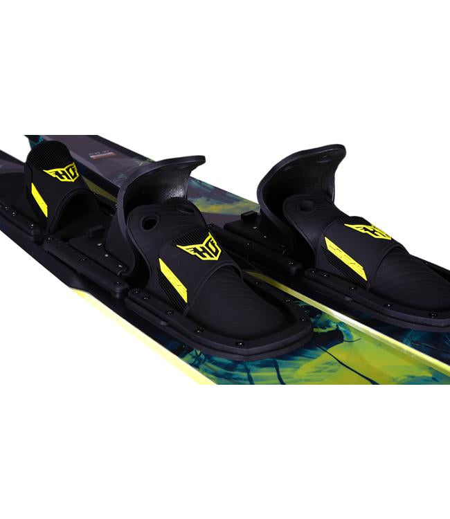 The Freeride Combo Waterskis make waterskiing more accessible and enjoyable. Initially created as a single slalom ski suitable for all lake conditions, this combo set has become a must-have for boat owners. Featuring a low-drag design optimized for open water, these skis provide stable starts, effortless carving, and quicker skill development. Enhance your time on the water and experience nonstop excitement with the Freeride Combo Waterskis.