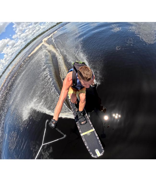 The Hovercraft boasts a surface area surpassing two skis combined, delivering effortless take-offs reminiscent of a wakeboard. It's the perfect choice for newbies and seasoned pros alike that desire a surf-style, open-water skiing experience. Skiers will benefit from improved control, balance and stability at low velocities. The Widetrack Frame ensures steady deep water starts, as well as less wobbling and facial spray. Furthermore, the expanded surface area enables smoother take-offs at lower speeds.