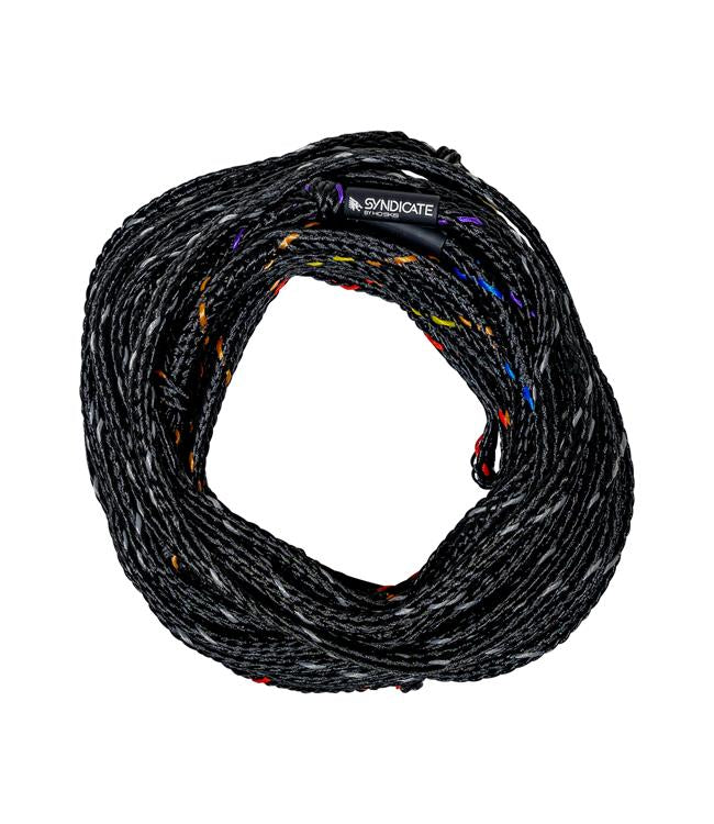 The HO Syndicate Powerline Mainline builds on proven design with innovative customization. Tournament skiers benefit from removable sections extending to 32' off, allowing personalized setup for individual preferences. The spiral weave construction actively combats rope twist while minimizing water absorption, delivering a lighter rope that maintains consistent performance throughout each pass. Built with 80-strand pre-stretched material, this mainline meets strict length specifications—backed by a money-back guarantee. An oversized handle loop accommodates various handle styles seamlessly, while integrated ID sleeves clearly mark lengths from 15' off to 43' off for quick reference and setup verification.