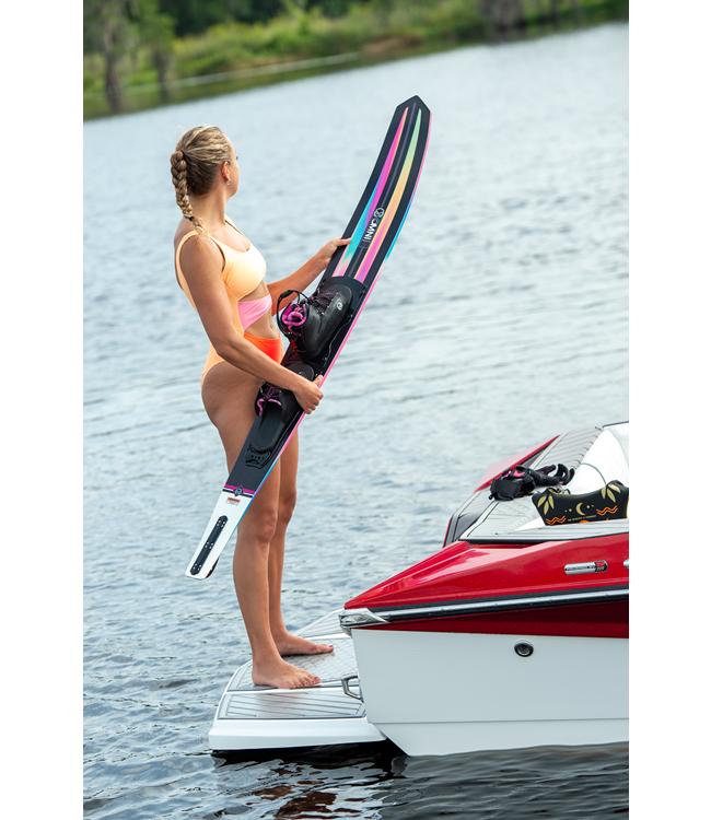 The OMNI (Mark II) is a top-seller and beloved by riders for its all-in-one performance. It offers effortless starts, smooth turning, confident wake crossings and endless thrills. This 2nd generation Omni has been improved with modernized rockerline, dual flat spots for balance, deep concave and large bevels for stability and forgiveness. If you're in search of a one-ski-wonder, the OMNI has it all to swiftly grow and master skiing with its versatile design and top-tier features.