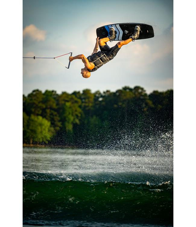 The Murray shape begins with a Subtle 3-Stage rocker, where there is no flat spot, the rocker simply increases under foot for a colossal boost off the wake. Carrying on from past shapes, Shaun kept the Variable Edge Design and Center Landing Spine making the board enjoyable for all ability levels. The board’s edge is rounded between the inserts, sharpening under foot and then cupped at the tip and tail delivering solid edge hold when you want it and forgiveness when you need it. Hyperlite’s BIO3 Core and CarboNetX construction keep The Murray super light for easy spinning. This combination makes riding a larger board more suitable.