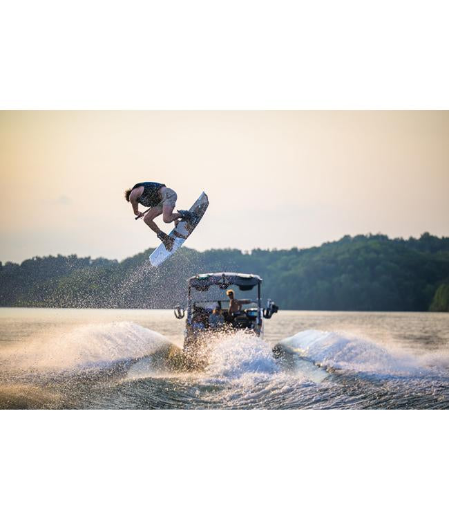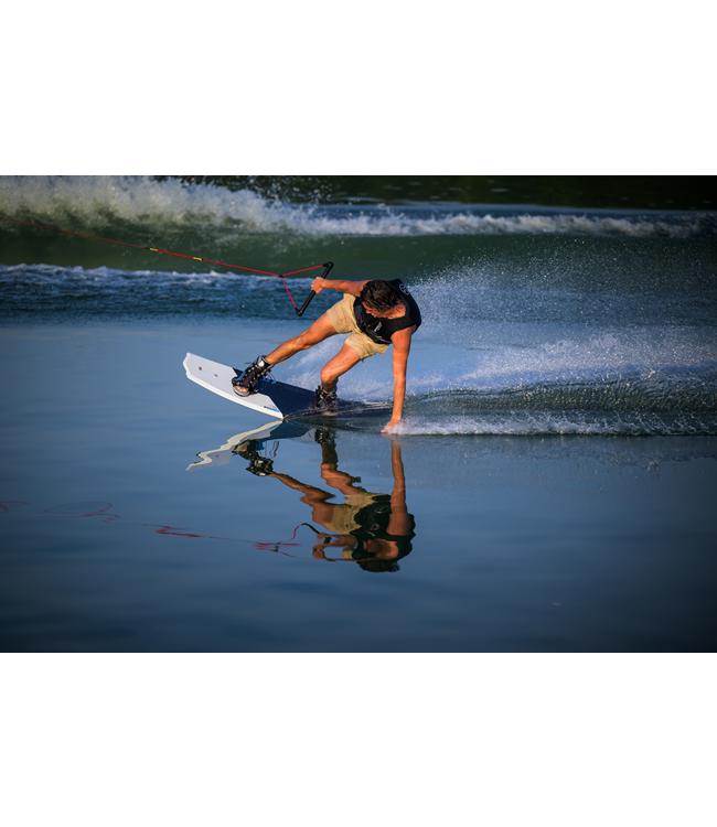 The State 2.0 is crafted to elevate riders' abilities by integrating features from various asymmetrical designs. It features a shorter, more efficient toe-side edge that simplifies initiating challenging wake jumps. A slim molded-in fin reduces drag, while subtle Toe-Side Footbed Risers enhance leverage under pressure. The extended heel-side edge ensures stability and speed approaching the wake without sacrificing pop. Ideal for those looking to build a strong wakeboarding foundation, the State 2.0 offers balanced performance and control.