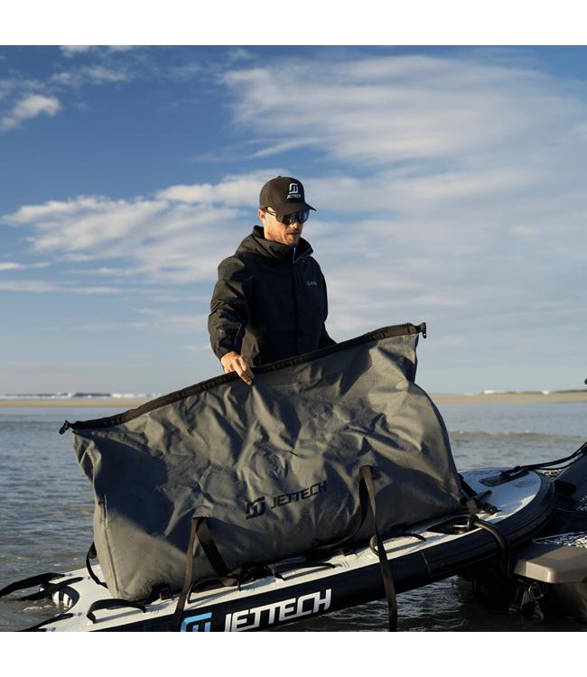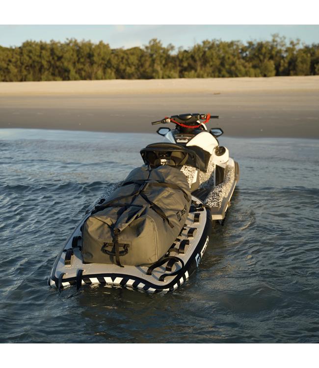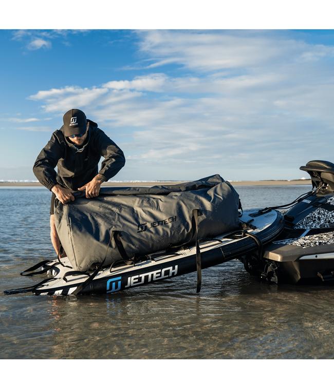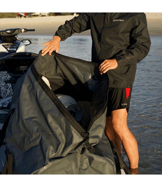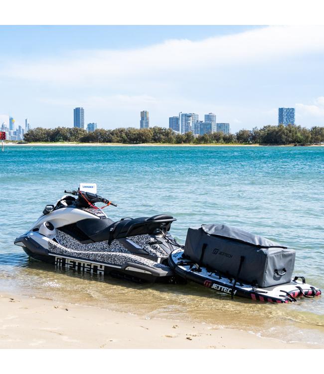 When on an ocean fuelled mission, you’ve got to carry all the gear you need safely, securely and most of all dry. Our extra large 195L Jet Ski touring dry bags are designed to transport all your camping and weekend gear. Confidently pack your swag, food, clothing and any other water-sensitive supplies knowing they’ll stay safe. The 195L touring bag is reinforced with extra strong points to carry heavier equipment like cameras, drones and cargo. With integrated Jet Tech sled latching points allows the touring bags to easily secure to Jet Tech sleds, making it the first and most versatile system to transport your gear to your destinations, predominantly giving your jet ski a trailer system, that is still also compatible with our Jet Tech Adventure Fish boxes.