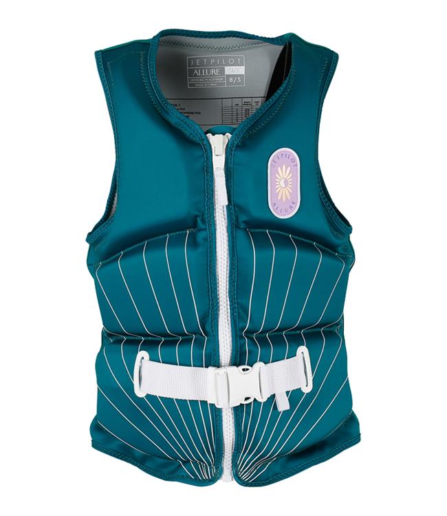 The Jetpilot Allure Womens Life Vest boasts an affordable price and is expertly crafted for maximum performance. Its lightweight, tailored, and segmented design caters to all body types, and it is AS/NZS 4758 L50s certified. Constructed with eco-friendly Ecoprene and a sturdy PK lok zipper, it features buoyancy foam for both safety and comfort. Its stylish design and wave-inspired print make it a sought-after choice for wakeboarders and waterskiers alike!