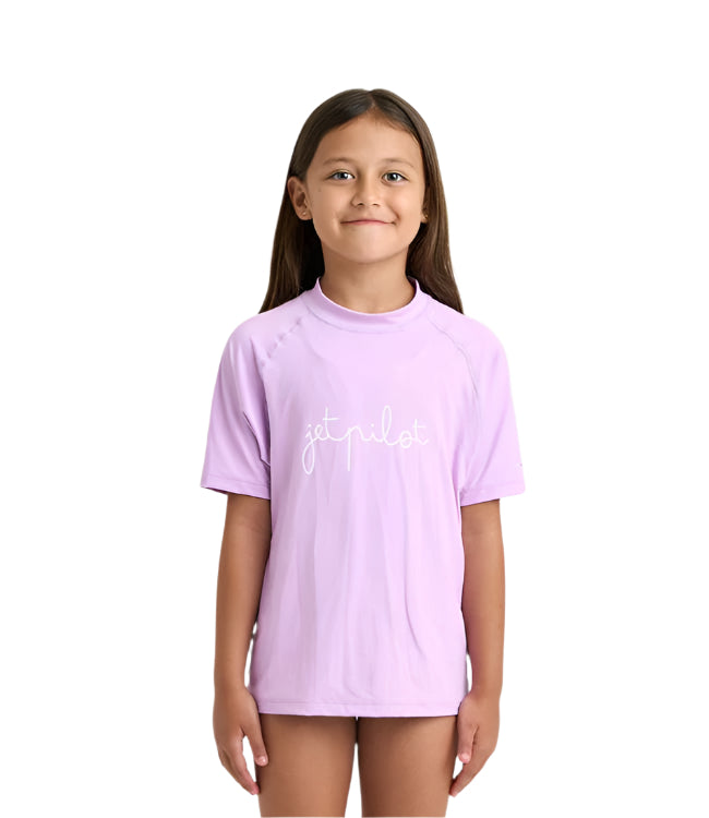 Jetpilot Girlss Short Sleeve Rashie are specifically designed to fit groms perfectly, giving them long sleeve UV protection in cool designs.