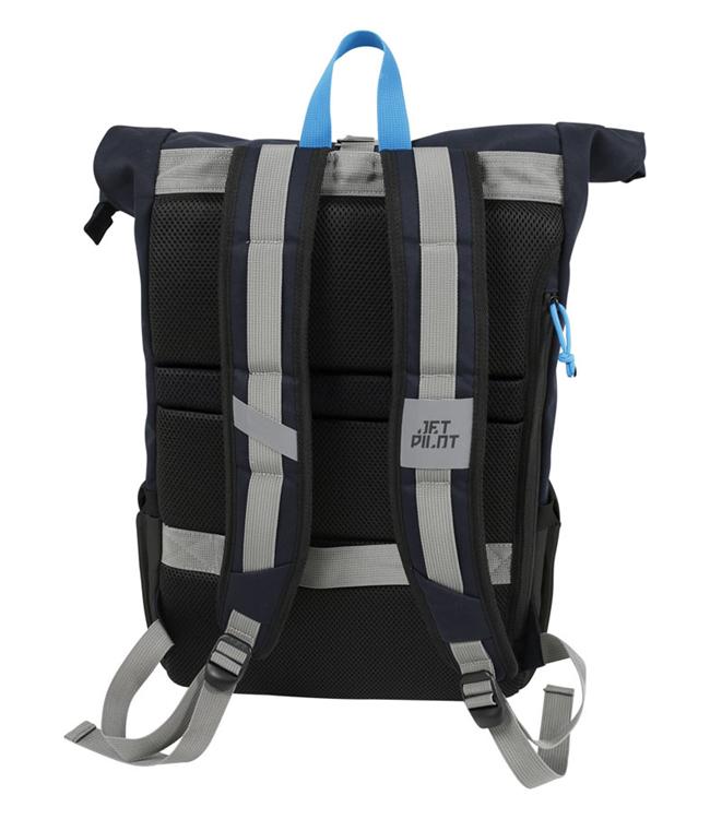 Durable, convenient, and expertly designed, the Jetpilot Transit Backpack meets all your needs. Made with 100% polyester twill, this backpack has a reinforced back panel for improved air flow, an expandable side pockets for drinks, and a padded laptop compartment for safe storage. Perfect for traveling, it also features a front attachment loop for small items, a luggage sleeve for use with wheeled luggage, and a top grab handle for easy access.