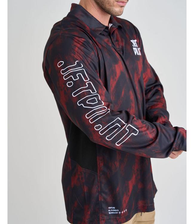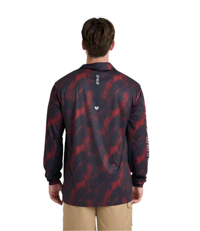 The Jetpilot Venture Fishing Polo offers UPF50+ sun protection, a quick-drying and lightweight design, and a mesh panel underarm for maximum comfort and protection during any journey. The custom print by Jetpilot adds a stylish touch to your gear, perfect for your next water adventure.