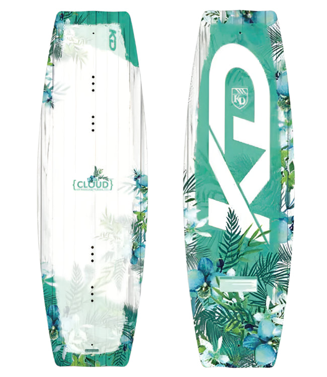 The KD Cloud Womens Wakeboard is designed to eliminate the frustration of getting stuck outside the wake by enabling smooth offside turns as easily as heel side ones. Its unique dual molded fins, positioned at the board’s edges, help initiate turns instantly when the rider shifts weight. Featuring a continuous rocker and a variable edge rail that is rounded in the middle and sharp at the tips, it offers precise control without catching. Tailored for a woman’s lower center of balance with a lighter foam core and fiberglass lay-up, the Cloud makes mastering wakeboarding basics effortless, allowing more energy for advanced tricks. Whether slashing aggressively or building confidence, the KD Cloud delivers reliable performance.