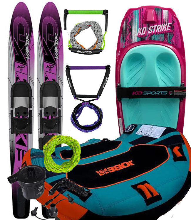 This set up will get your little ripper set up on the water in style with a tube, kneeboard and a pair of skis along with all the ropes and equipment you need for great day on the water.
