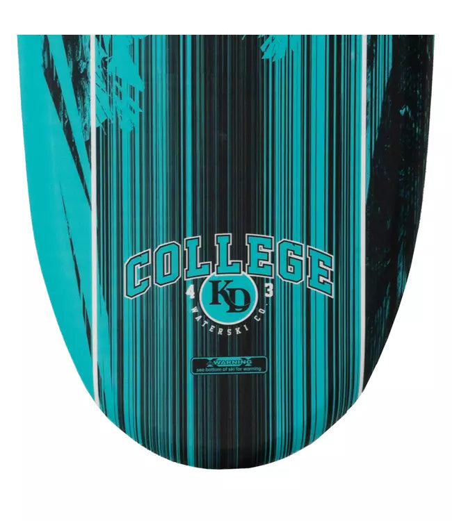 The KD College Trick Ski with Axcess Boot & RTP (2026) offers an affordable way to improve your skills this summer. Designed with the same shape as the record-setting 12k but crafted from more forgiving materials, it helps skiers learn new flips and toe line tricks more quickly. Its dense Poly-Urethane foam core combined with fiberglass construction creates a reliable ski that performs well without needing aggressive handling. Featuring the signature rolled tip and tail corners and beveled rails of the 12k, the KD College ski feels like a natural extension of the rider, allowing confident progression without frequent washouts.