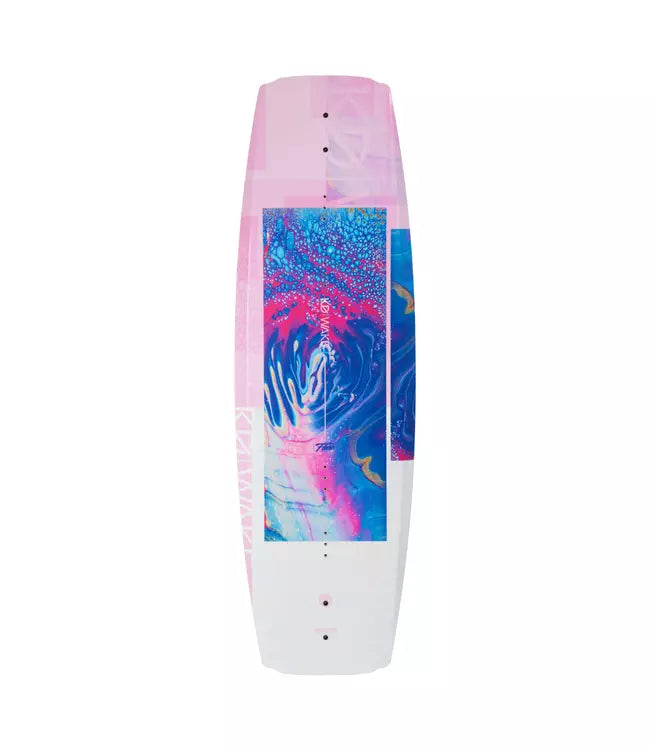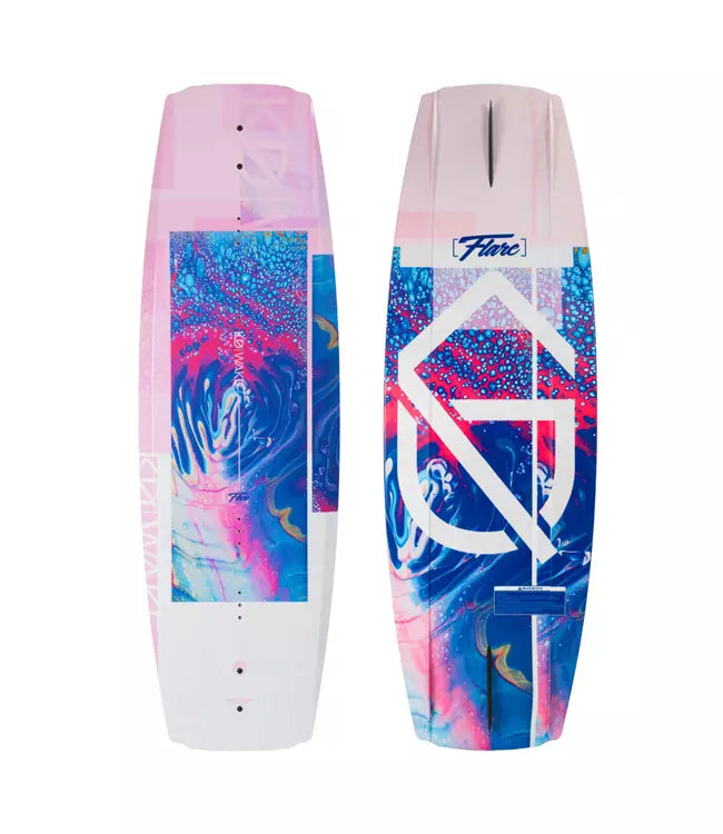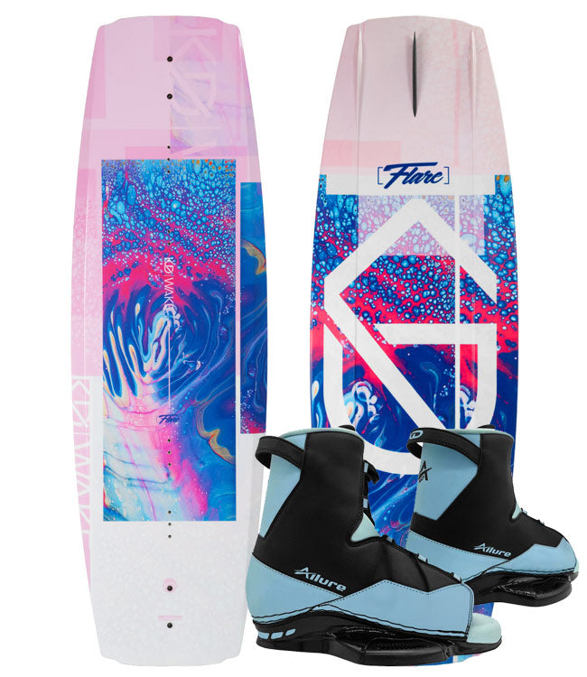 The redesigned KD Flare Wakeboard Package offers beginners a gentle entry into wakeboarding with its innovative design. Its blended rocker transitions from aggressive ends to a smooth center, delivering reliable wake jumps and effortless carving across various conditions. The simplified base design features generous channels and molded fins for enhanced maneuverability. Female riders will benefit from the wider board profile, enabling easier water starts and comfortable riding at reduced speeds. The Flare with Allure Boots provides the perfect platform for women to build confidence and advance their wakeboarding skills beyond the basics.