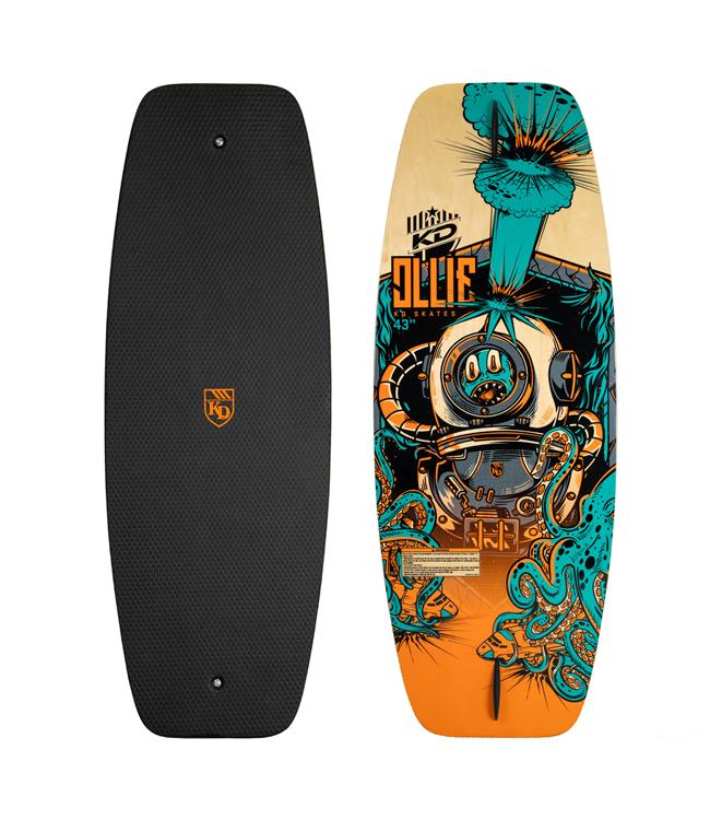 The KD Ollie is the perfect skate to have in any boat, shaped to provide easy riding and even easier ollie power. Featuring a continuous rocker and wood design, the Ollie is strong, providing a consistent pop every attempt. With a concave EVA traction Pad and a traditional fin setup, you will have a comfortable ride that edges like a high-end skate but is suitable for beginners as well.