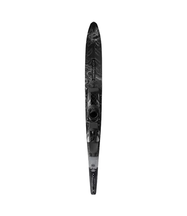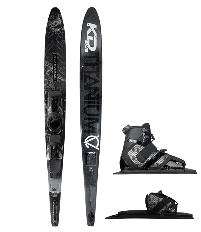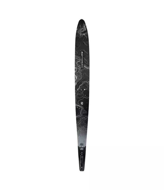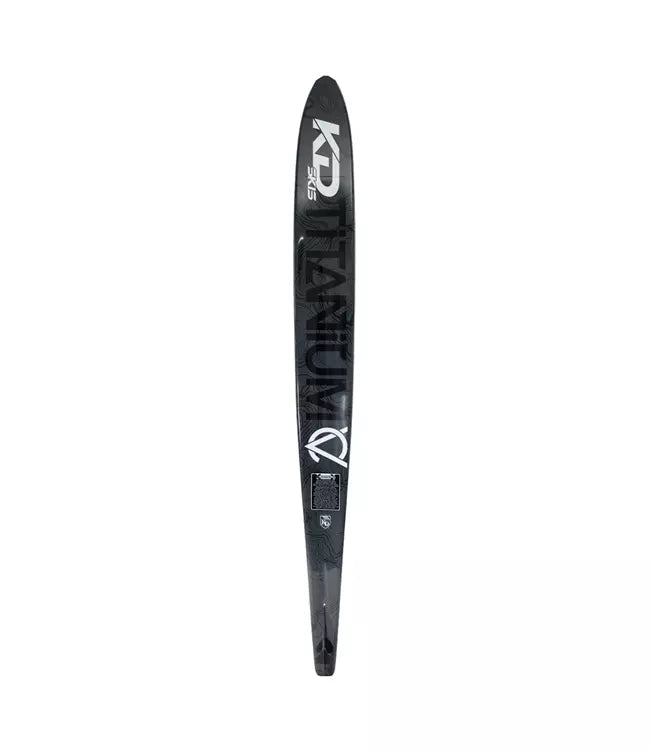 Invested with two years of development, the KD Titanium CV Slalom Ski is a prime example of American craftsmanship. This Element series ski boasts the latest advancements in ski technology, including a flat spot under the bindings, a front concave step, and a rounded tail bevel, all strategically designed to enhance water dispersal and create seamless turns. Experience the ultimate in performance with this dependable and enjoyable ski.
