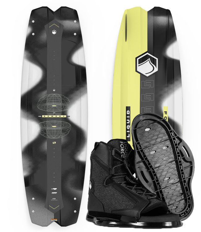 The Liquid Force Remedy Aero Wakeboard Package with Index Boots (2026) is an enhanced version of Harley Clifford's Pro Model, featuring the innovative superlight Aero core made from Divinycell foam and carbon reinforcement. Trusted by top riders worldwide, this board helps you push your limits with confidence. Its aggressive 3-stage rocker and triple concave design, combined with venture quad channels, elevate your performance. The split tip shape and quad fin setup provide excellent control and precision for sharp turns and strong edging. This is the Remedy that riders have been waiting for.