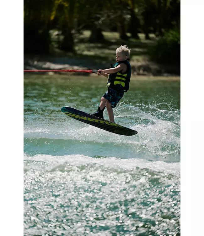 The Graviton Trick Ski enhances wake performance by providing dependable takeoffs and steady landings, making it easier to advance through tricks and improve skills faster. Featuring advanced CorFlex technology for heightened responsiveness and GNR Rails for exceptional tracking accuracy and smooth rides, this ski is perfect for wake jumping, carving, or competitive events. It makes trick skiing more approachable and enjoyable for riders at all levels.