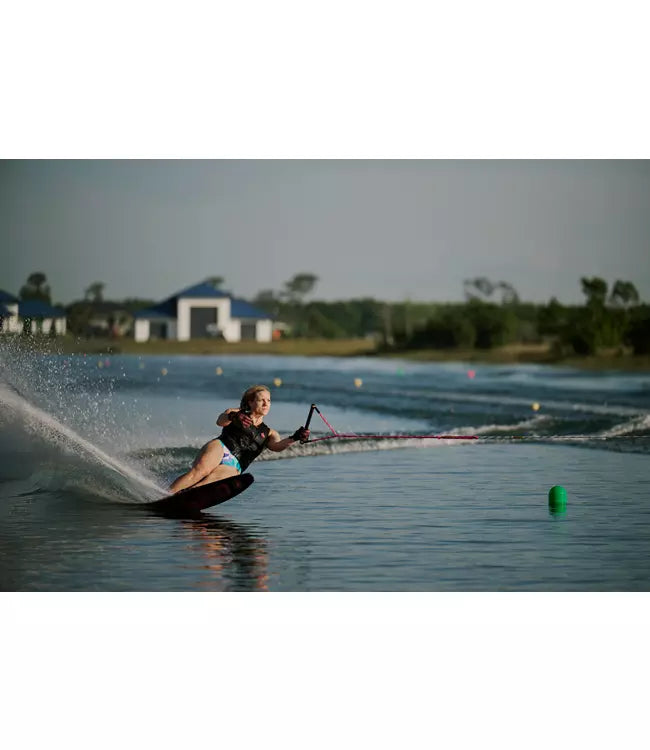 The Lyric Graphite Slalom Ski features ultralight carbon fiber construction paired with Radar's cutting-edge All-Terrain Core technology, providing superior forgiveness and rapid wake acceleration. This model delivers outstanding stability and reliable performance in varying water conditions, making it perfectly suited for women seeking to enhance their abilities and self-assurance while skiing.