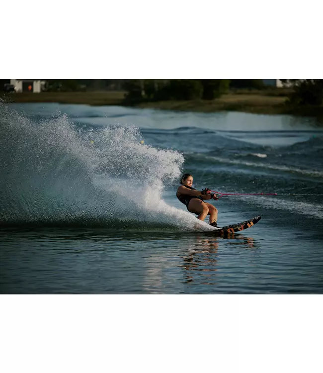 With a featherlight carbon fiber encasing the All-Terrain Core, the Lyric Alloy delivers exceptional forgiveness while creating remarkable wake speed. This ski offers stability and predictability across diverse water conditions, making it the ideal equipment for female water sports enthusiasts looking to elevate their performance to new heights.