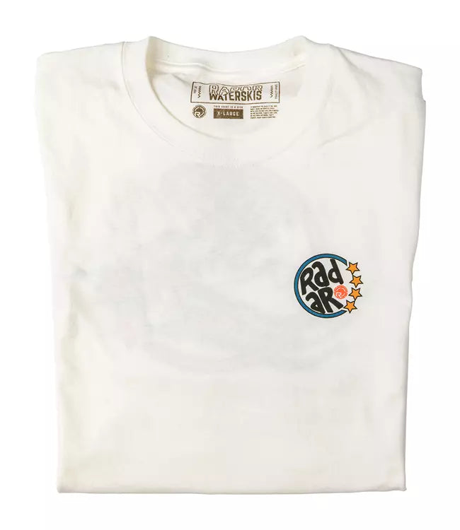 The Radar Swerve Tee evokes nostalgic memories of the vibrant neon aesthetic popular during the 1980s era.