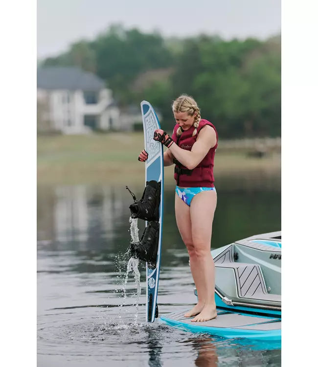 This female-focused ski delivers effortless deep water starts with exceptional balance and stability during cruising. It transitions smoothly to edge control, enabling fluid, continuous turns throughout your ride. Specifically engineered for 20-30 MPH open water performance, the Women's Session creates the perfect progression path from beginner to accomplished water skier.