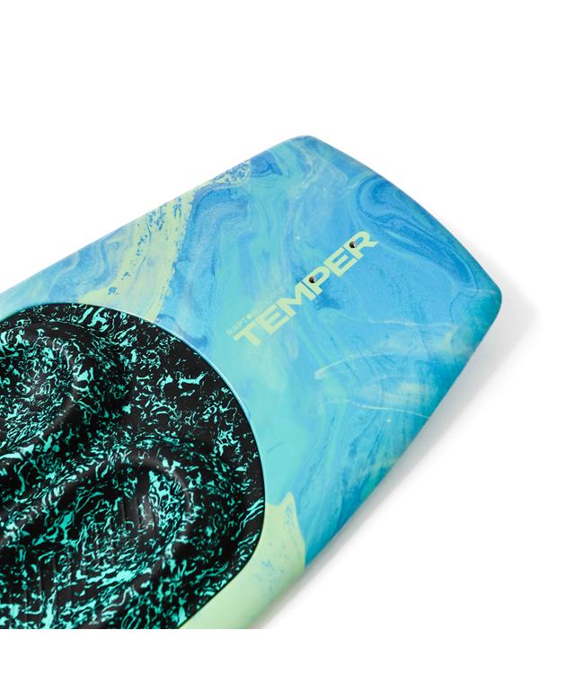 The Temper is built to suit a wide range of kneeboarder and can be used by the weekend warrior, or the rider who likes huge air and hard riding. The overall shape is forgiving and easy to use. Using a wide tip and tail, which provides a comfortable ride with soft landings, combined with molded fins that make transitions from edge to edge easier. We've also given the Temper a strengthened core using PU foam, wrapped in PBT top sheet compression fibreglass, ensure the Temper will hold up anything a rider throws at it.