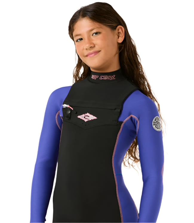Experience the ultimate combination of comfort, sustainability, and performance with the Ripcurl Dawn Patrol Kids Steamer - Berry. Featuring an E5 flash lining, 3x2 mm thickness, and natural rubber Yulex construction, it will keep your little one cozy and shielded in the water all season.