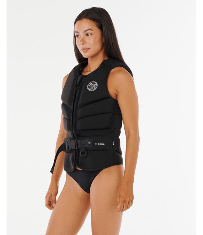 Australian Standards L50S ApprovedThis life vest by Ripcurl is designed for women and boasts supreme security and lightweight construction. The segmented design, along with flexible side panels, creates a snug and comfortable fit. It also drains water quickly, ensuring a dry and comfortable experience. The E bomb from Ripcurl sets the standard for life vest technology, providing a perfect fit that you won't even feel.