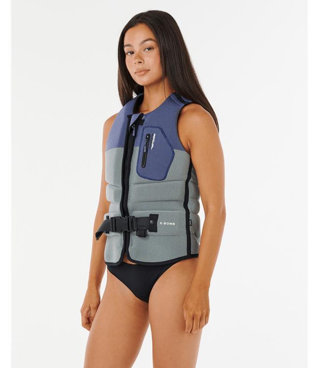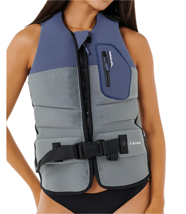 Australian Standards L50S ApprovedElevating your water activities with the latest in life vest technology, the women's Ripcurl E-Bomb offers supreme security and lightweight construction. Its segmented design and flexible side panels provide a snug and comfortable fit, while the quick-drain feature ensures a dry and comfortable experience. Trust in Ripcurl for the perfect blend of form and function.