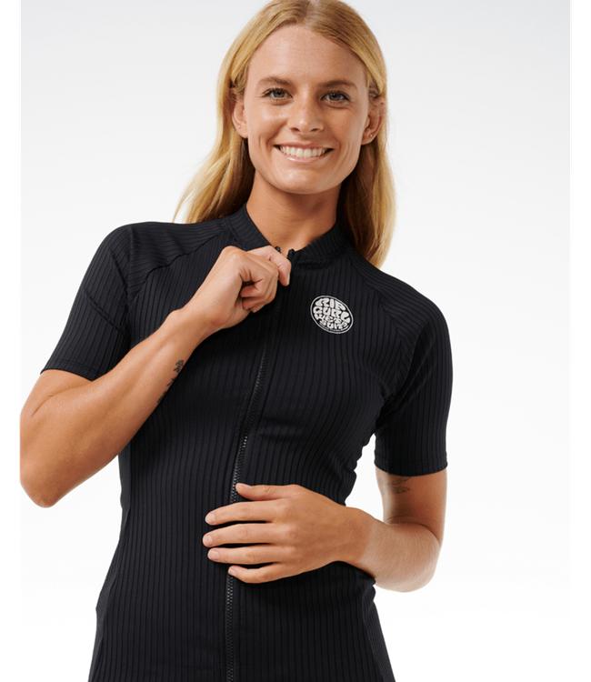 The Ripcurl Premium Surf Zip Thru Rashie for women boasts a comfortable short sleeve design with a front zip, making it the ideal choice for long stays out in the sun. Crafted from a sturdy and flexible poly elastane fabric, it features a relaxed style fit that offers both style and comfort during your next day on the water.