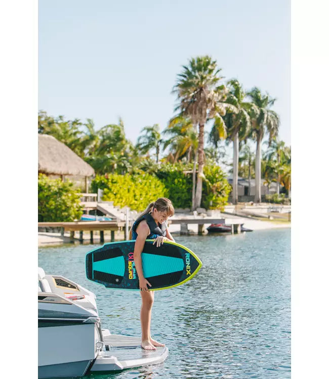 A responsive wakesurfer crafted specifically for the rising generation of water enthusiasts. This thruster design bridges the gap between youth and adult boards, offering teenage riders a scaled-down version of the popular Koal Surface Sea Captain. Featuring lightweight Standard Core construction and a versatile hybrid profile, it accommodates both surf and skim riding styles. The Alpha Squad Sea Captain represents Ronix's commitment to supporting young riders who have mastered beginner boards and are ready to elevate their performance on the endless summer waves.