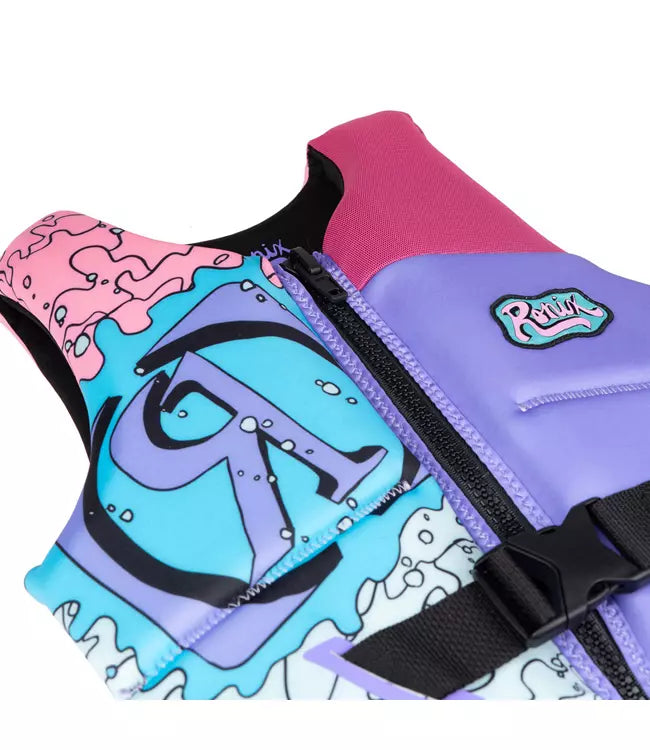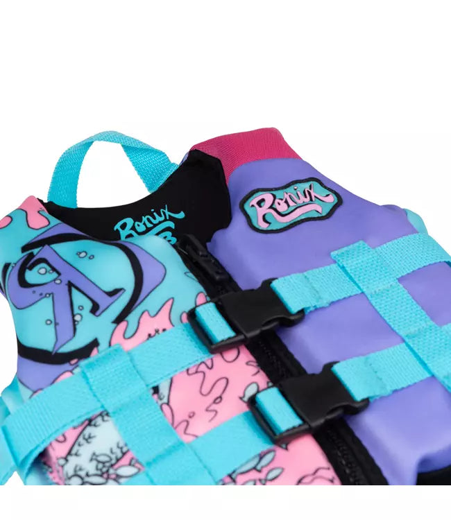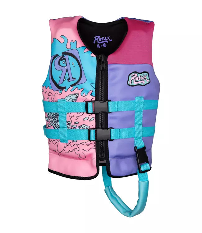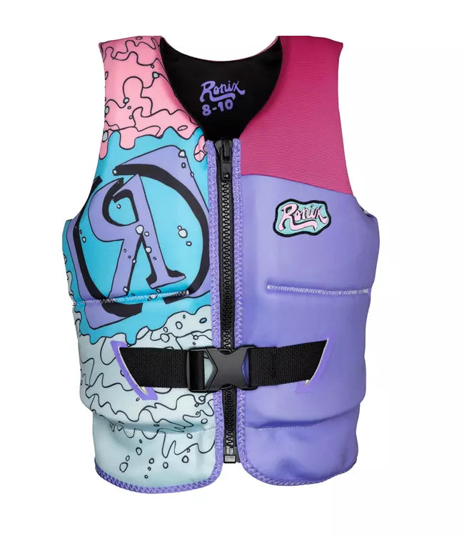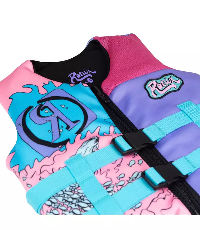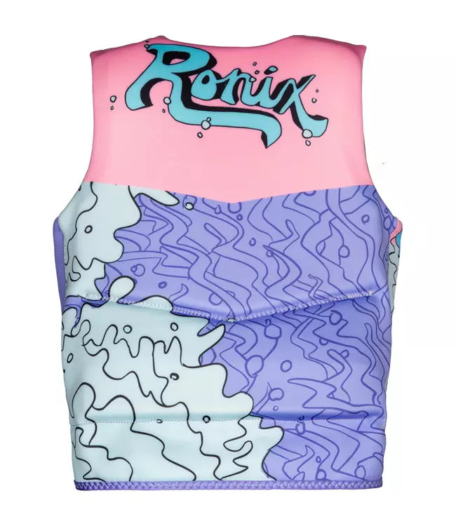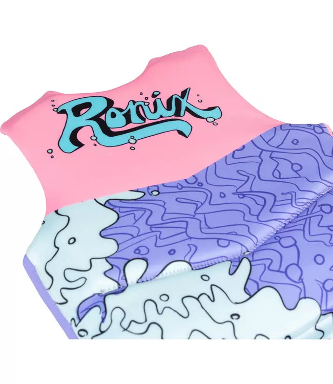 Young ladies, maintain buoyancy with this comfortable flotation device. Made from incredibly plush material, this vest ensures safety and stability during water activities all summer long. Featuring optimal flotation capabilities and engineered for extended enjoyment, the Ronix August Girls Life Vest is the perfect companion for water-based recreation.