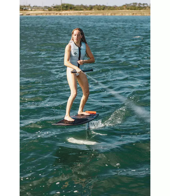 The Ronix 727 Foil Board delivers essential stability for balanced flight positioning. Its durable thin profile features Surface Skin technology that disperses water impact during landings. Ideal for foiling beginners prioritizing steadiness or advanced riders performing strapped-in aerial maneuvers. This reliable medium-tempo board ensures consistent control throughout your ride, maintaining predictable handling in all conditions.