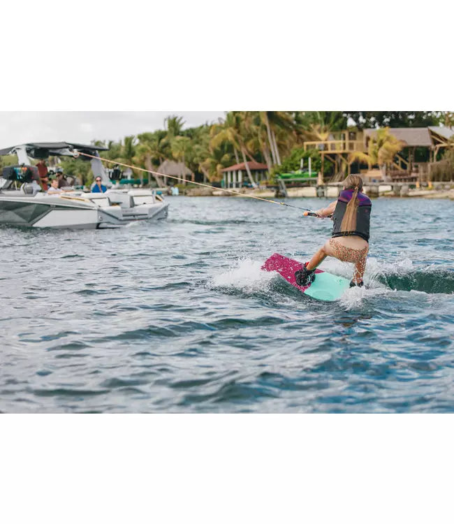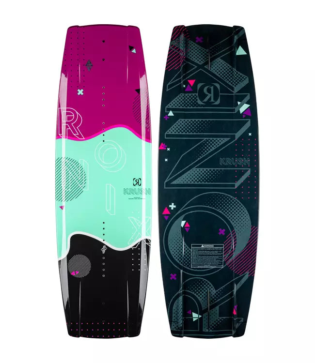 The Ronix Krush Legacy Wakeboard stands as the premier choice for wakeboarding beginners. With two decades of engineering expertise, this board addresses the natural asymmetry in rider positioning—crossed up during toe-side riding and aligned during heel-side. Its innovative design features varying sidewall heights and fin lengths: shorter fins and vertical sidewalls on the heel-side for smoother gliding and quicker release, while the toe-side offers longer fins and sharper rails for enhanced grip and stability. The board's perfectly balanced rocker line promotes a neutral riding position, allowing riders to maintain relaxed weight distribution for optimal performance and comfort.