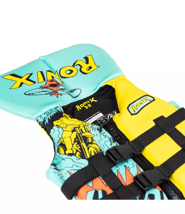 Elevate your toddler's time on the water with the Ronix Vision Collard Life Vest. Designed to envelop your little one like a comfortable armchair, it delivers the reassuring support needed for extended days boating. The vest combines essential safety features with exceptional comfort, making it an ideal protective solution for young water enthusiasts. Dependable protection meets premium quality in this outstanding toddler life vest.